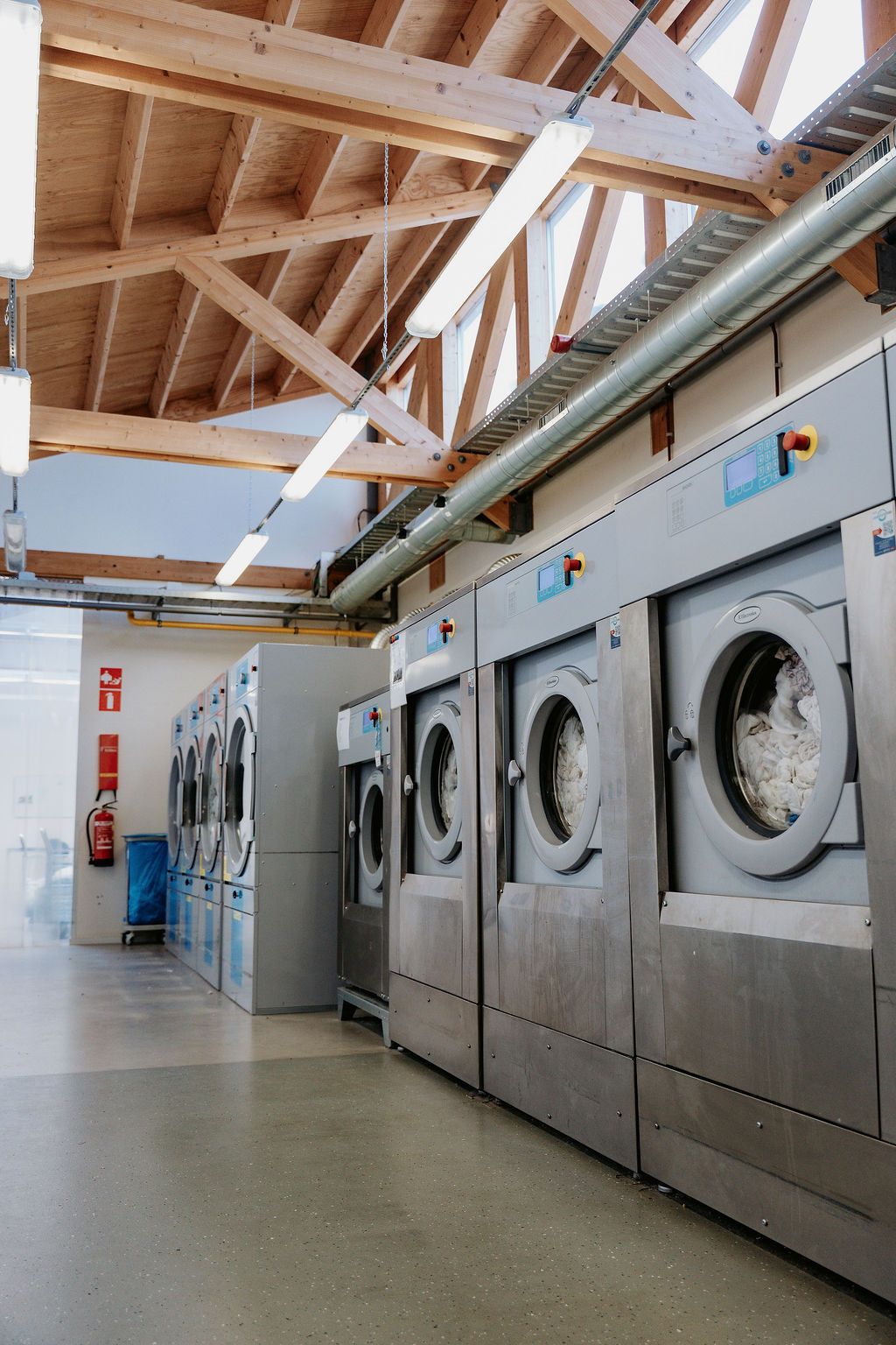Voor Wasserij De Koppeling hebben wij een mooie, volledig gereviseerde wasserij mogen realiseren. De wasserij is ingericht met hoogwaardige, zorgvuldig gereviseerde Electrolux-machines: vier wasmachines van 24 kg, één wasmachine van 30 kg en één wasmachine van 14 kg. Daarnaast zijn vier drogers van 30 kg en twee mangels geplaatst.